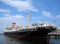 Nippon Yusen Kaisha (NYK), which may be literally translated as Japan Mail Steamship Company, was first created in 1885, the result of a merger between two Japanese shipping companies, Yubin Kisen Mitsubishi Kaisha (The Mitsubishi Mail Steamship Company) and Kyodo Unyu Kaisha (The Union Transport Company). Two red stripes were adopted for the new company’s house flag, symbolizing the mutual goodwill of both companies and the hope that their combined fleets would one day serve the entire world. The NYK Line opened the first regular service from Japan to the United States in 1896 (the first arrival was met at Seattle with a 21-gun salute). The company experienced rapid growth: in 1901, just sixteen years after its formation, it already ranked as the seventh-largest shipping company in the world. A decade later, in 1911, an NYK freighter delivered the first cargo of trans-Pacific cherry tree saplings, a gift from the City of Tokyo to Washington, D.C. These same cherry trees line the banks of the Potomac to this day. In 1930, NYK launched three new cargo-passenger ships—Hikawa Maru, Hiye Maru, and Heian Maru—on the Yokohama-Seattle route. Hikawa Maru was the first of these ships, completed at the Mitsubishi Yokohama Dockyard on April 25, 1930, and departing on her maiden voyage from Kobe to Seattle via Yokohama, Hawaii, and Vancouver on May 13, 1930. Hikawa Maru was built at a cost of ¥6.55 million (equivalent to over ¥12 billion today). She could accommodate 331 passengers (76 in First Class and 186 in Third Class and presumably 69 in some other class) and had a crew of 126. Service combined with superb food and her beautiful art deco interiors saw her become a much sought-after ship, and passengers gave her the nickname “Queen of the Pacific.” In 1941, she was requisitioned by the Imperial Japanese Navy and converted to serve during the war as a hospital ship. On August 14, 1945, Japan surrendered unconditionally, and amazingly Hikawa Maru was the only mainstream Japanese passenger liner to survive the Second World War. However, she was immediately seized by the U.S. government. From 1945 to 1947 she was used to transport U.S. personnel between the United States and Japan. In 1947 Hikawa Maru operated as a simple freighter from Japan to the U.S. East Coast. This service ended in 1954. In 1954 she was refitted into a fine passenger liner once more and recommenced her original trans-Pacific service for NYK Line. As passenger numbers dwindled, it was decided to end her service in 1960. During her long period of service before and after the war, Hikawa Maru made 238 crossings through the rough waters of the North Pacific and carried 25,000 passengers. A complete sailing record, including her time as a hospital ship, can be found at the Japanese Hospital Ships Web site. In 1961, the year that Yokohama celebrated the 100th anniversary of the opening of its port, Hikawa Maru was permanently berthed there, fitted out to become a floating youth hostel and museum. Sadly some of her engine spaces and lower accommodation decks were gutted to create dormitories. As the years passed, visitors to the hostel declined, and it closed in 1973. Hikawa Maru remained at her berth, continuing to serve as a museum and restaurant. On board visitors could view her magnificent art deco interiors and the room once used by Charlie Chaplin. During the summer a beer garden was operated out on her open decks. Then, in late 2002, the restaurant closed. With only a museum and the summer beer garden, the numbers of visitors to the ship dramatically declined, and on September 1, 2004, both the Hikawa Maru and the neighboring Marine Tower were put up for sale by their operator due to heavy losses. Since then the future of the historic liner has remained uncertain although there is a possibility that NYK Line may purchase the ship and keep her going as a museum to their illustrious history. The museum as we experienced it was a hodge-podge of original engines and equipment, restored staterooms, and collections of exhibits that were not part of the original ship. These included the World Passenger Ship Museum, which featured scale models of world-famous oceangoing luxury lines, a “cruising theater” mixing 3-D sound and vibrating floor (if I recall correctly, this wasn’t working properly), and an exhibit of tin toys of ships. The Hayao Nogami Gallery exhibits a collection of 30 paintings of passenger ships depicted in realistic detail by Hayao Nogami. In the Captain’s Room, a robotic captain told us about the ship (in Japanese, of course). Another area had a wind-and-wave simulator (this definitely wasn’t working properly), and a series of dioramas in which 3-D images of “humans appear to perform for you.” Since the “humans” were all speaking Japanese, we didn’t linger long in this gallery. Although it doesn’t appear that photography was prohibited aboard the ship, for whatever reason, we did not take any photos. There are, however, numerous excellent photos to be found elsewhere online. Australian maritime historian Reuben Goossens has a Web site devoted to Hikawa Maru, which has both current and historical photos. The Ocean Liner Museum site has a fine photo gallery of professional photos. And another gallery offers what are obviously just tourist snapshots, but numerous and attractively presented. Those interested in statistics about the ship can find them