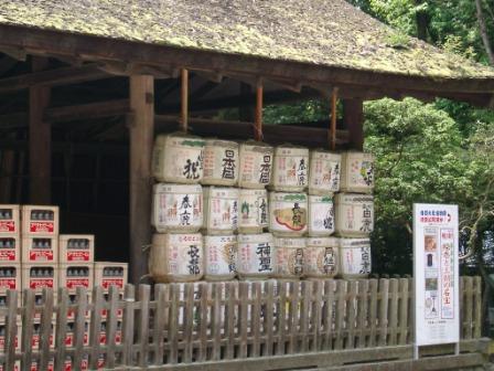 of sake donated by the manufacturers as temple tribute. All the barrels are now
