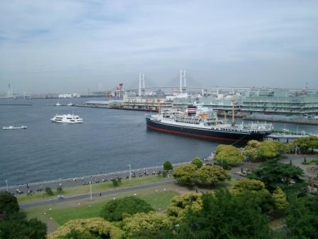 was the view from our window, over Yamashita Park toward Yokohama Bay Bridge. In